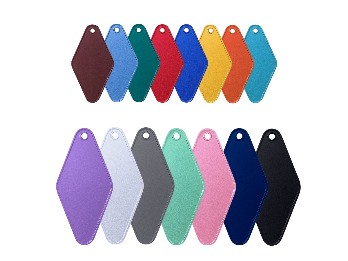 アルミ製キーホルダーは大小の2サイズで豊富なカラ一。