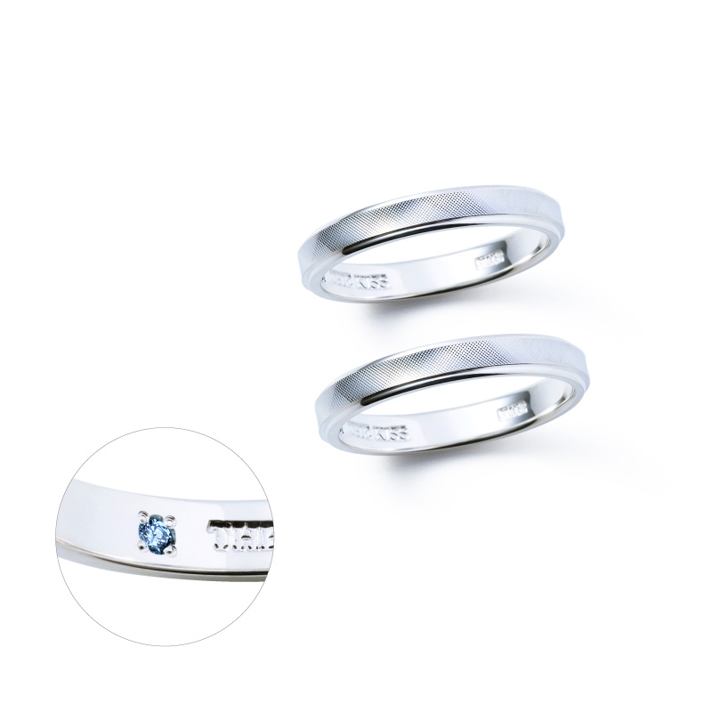 「幸せで満ちあふれますように」との願いを込め、リング内側にはブルーのラボグロウンダイヤモンドをセット。まるでふたりの幸せを見守ってくれているよう。