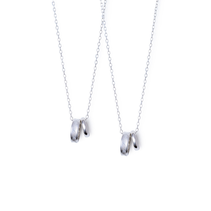 全体に繊細なカットを施したリングが印象的なペアネックレス。