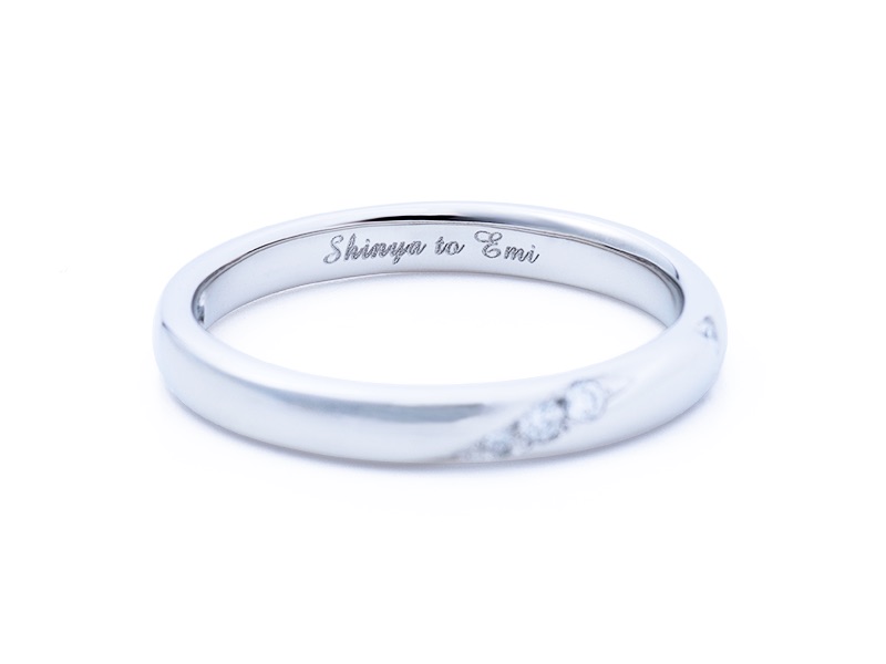 リングの内側に、おふたりのイニシャルや記念日を刻印いたします。